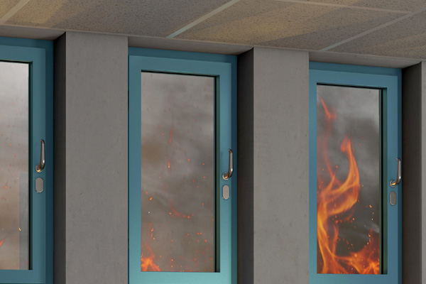 【防火】建築物の「延焼のおそれある部分」における開口部には、法律で防火設備(防火戸)の設置が義務付けられおり、これに関する情報の収集及び周知並びに関係官庁、関係機関等への提案をおこなっています。